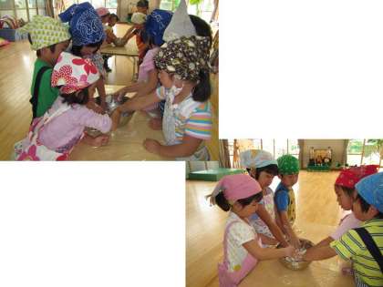 今,子どもたちの中で,だんごつくりが流行っているので,丸めるのがとても上手です。