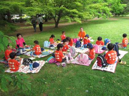 その後,御所でお弁当を食べ,シロツメクサを摘んで花飾りを作ったり,追いかけっこをしたりして,ゆったりとした時間を過ごしました。