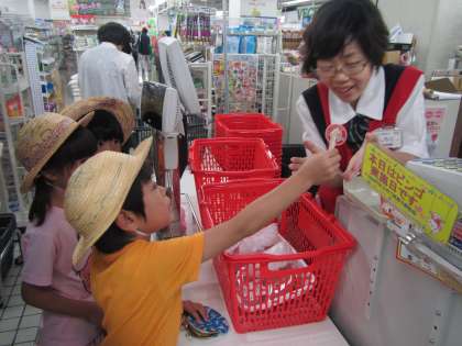 金曜日にカレーに入れるものを相談していたので,今日はみんなで決めた材料を買いに生協へ行きました。