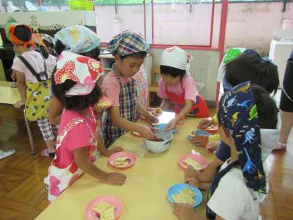京都市立幼稚園では,預かり保育の充実に努めています。預かり保育では,家庭的な雰囲気で日頃の遊びとは違う玩具や遊具でゆったりと遊んでいます。異年齢の子どもたち同士の自然な交わりや新しい友達,先生,大人との出会いもあり,子どもたちの遊びの場や時間の保障とともに,保護者の方のリフレッシュや就労支援にも役立っています。