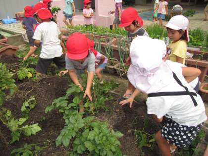 「ポテトチップにする」「焼き芋がいい」「ポテトサラダもできるな」「カレーにしよう」「ジャガイモスープもおいしいで」など,楽しみがいっぱいです。