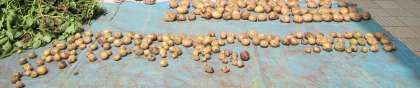 大きいジャガイモは56個,中ぐらいのジャガイモは131個,小さいジャガイモは数えきれないぐらいです。
