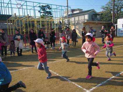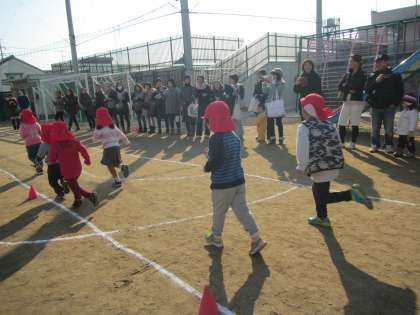 12月から,子どもたちは毎朝,幼稚園の園庭でマラソンをしてきました。今日は乾隆小学校の校庭をお借りして,マラソン大会が開催されました。お家の人もたくさん応援してくださって,子どもたちは普段にも増して,張り切って頑張って走ることができました。