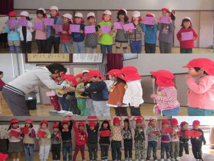 マラソン終了後には,園長先生から,ひとりずつに「がんばったカード」をいただきました。マラソンを通して,心も体も強くなりましたね。みんなよく頑張ったね。
