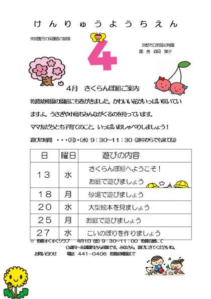 4月 さくらんぼ組のお知らせ