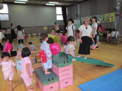 未就園児のみなさん,どうぞこれからもさくらんぼクラス(月・水9:30〜)においでくださいね。夏休みにはプール遊びもあります。