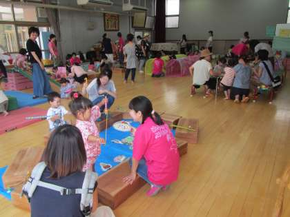 笹飾りつくりやボーリング,たからものつり,滑り台やマット遊び,ゆずります会のコーナーなど親子で楽しめることがいっぱいでした。