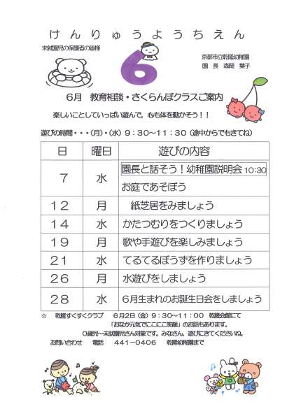 6月 未就園児教育相談 さくらんぼ組