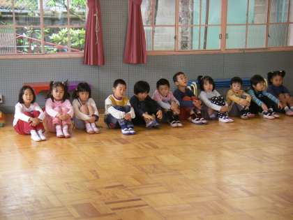 そら組は,みんなで座って歌を歌っています。年長さんは行動が素早いです。見通しをもって一人一人行動しています。