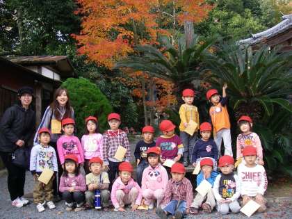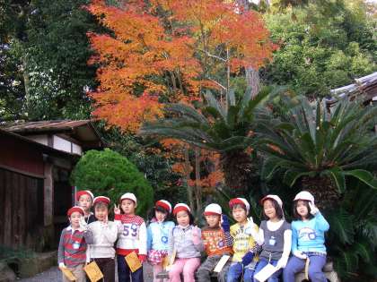 にじ組そら組が先に出発しました。「頑張るぞー,オー」