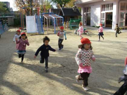 今週から朝のマラソンが始まりました。はじめてマラソンをする3歳児ひかり組の子ども達は,まだ続けて走ることが難しいので「疲れた」「ちょっと休んでくるわ」途中で休憩をいれながら参加しています。さすがに年中児にじ組や年長児そら組は,最後までがんばって走っています。寒くなってきましたが,走っていると体がホカホカしてきます。これから,もっと寒くなりますが,がんばって走っていきたいと思います。1月後半のマラソン大会ではどんな姿をみせてくれるでしょうか?楽しみです!!