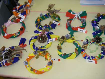 リースの完成です。ボンドが乾いてみんなで見合ってから持って帰ります。