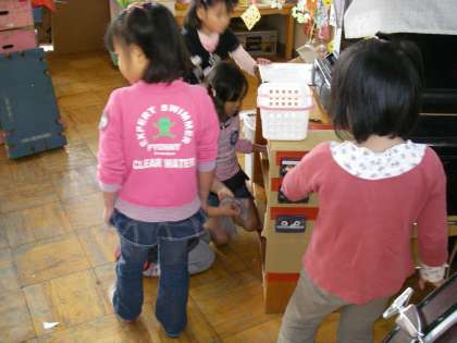 みんなで大掃除をしました。遊んだおもちゃや楽器や道具,ロッカーなど布巾や雑巾で拭いたり水で洗ったりしてきれいにしました。「次はくつ箱もきれいにしようー」掃除をするところを見つけていく子どもいます。