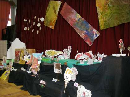 昨日今日と園内作品展を開催しています。絵画と立体作品を展示しています。