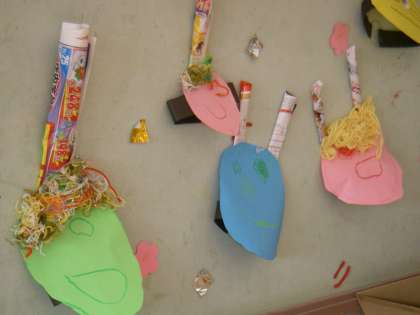 ひかり組も一人一人オニのめんを作り飾りはじめました。お帰りの時間に絵本の読み聞かせです。子どもたちが集まって座りました。聞く姿勢です。早くできるようになりました。