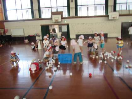 体操したり,かけっこしたり,紅白玉で遊んだりしました。