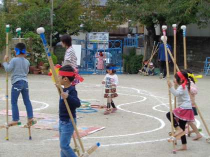 土曜日に運動会が終わり,代休明けの今日,子どもたちは元気に登園して来ました。保護者の方から口々に「運動会,ありがとうございました」「運動会,ご苦労様でした」と労いのことばをかけていただきました。そのやさしさに癒されました。さてね子どもたちはというと,にじ組とそら組が一緒になって竹馬や一本歯げたで迷路を歩いたり,サッカーをしたりと盛り上がっていました。そのあとリレーもしていました。ひかり組さんは,アサガオの花を集め,水につけたり,色水を作ったりと楽しんていました。一日の中でも次々と遊びを展開しています。
