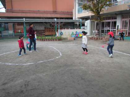 せまってくる相手チーム!「よし!いこう」と勇気を出して走り出す。