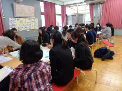 翔鸞小学校との合同研修会を開き,各クラスが公開保育を行いました。他の幼稚園からも多くの先生に参加してもらい,さらに数校の小学校の校長先生も保育をご覧にお越しになりました。たくさんのお客さんに見られる中で,子どもたちは,思う存分遊びに夢中になっていました。保育終了後,研究協議会では,クラスごとに,子どもが夢中に遊ぶ姿について,教師の援助の様子について,意見を出し合いました。参加された教職員の方々の見取りの深さに感動しました。柳生首席指導主事には,幼小接続の意味やなぜ必要なのか,誰のための取組なのかなど分かりやすく指導していただきました。これからの保育に,また,幼小接続に関わってなだらかな取り組みを進めていきたいと思います。ありがとうございました。