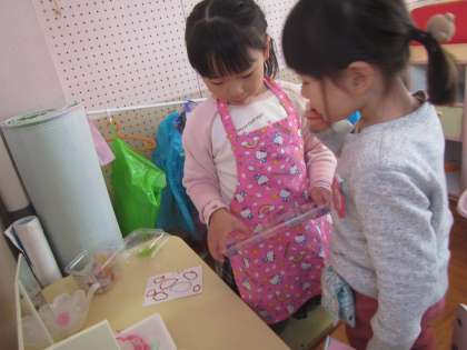 3学期もあと少しです。おばけやお化粧やダンス会など,今までの遊びがたくさんつまったチョコレート屋さん。来週はどんなチョコレートつくるのかな?どんなお店になるのかな?楽しみだね!