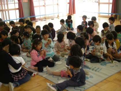 今日の柏餅は「鼓月」さんのご厚意で園児全員分いただいたものです。温かくてやわらかい出来立てを美味しくいただきました。ごちそうさまでした。ありがとうございました。
