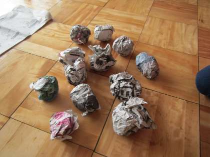 今日は,いっぱい新聞ボールをつくって遊びます。