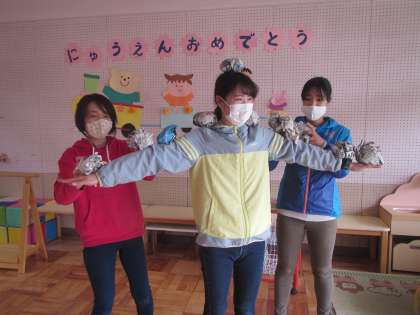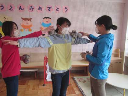 4 頭の上に一つ乗せて,何歩歩けるかにも挑戦してみてね!