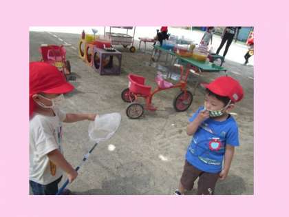先日からずっと,ずっと虫探しに夢中だった3歳児ひかり組の子ども達!今日は,念願かなって一匹のモンシロチョウを捕まえることができました!うれしくて,うれしくて 思わず「うれしすぎて ゆめに でてくるわ・・・!」とのこと。きっと,楽しい夢なんだろうなぁ!