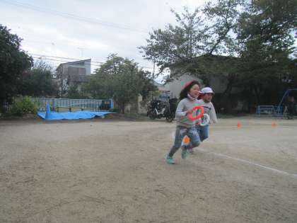 今日のリレーは,なんと最初の2回戦目引き分け!3回戦目は白組がバトンを落としこけてしまい,赤チームの勝ち。赤チームは勝ったけど嬉しくなさそう・・・。「もう一回したい!」と4回戦。赤チームが勝ちました。どっちも必死に走りいい勝負でした。そら組リレーはこれからも続きます。