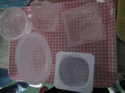 先週から,氷のできている日が続いていました。先週の金曜日に「氷が解けないように」と相談し,日陰に氷を置いて帰りました。すると,今朝まだ氷が残っていました。「色んな形の氷をつくりたい!」「氷の実験しよう!」とそら組の子ども達が言いました。まずは容器集めから始まります。色々な形の容器に水を入れ,よく氷ができている防火バケツの横に置いておきました。「はやく氷にするためにこの氷もいれよう!」と防火バケツから大きな氷を取り出しました。「でも,どうやって割る?」みんなで相談し,袋に入れて木の棒でたたいて割りました。明日,どうなっているか楽しみです。