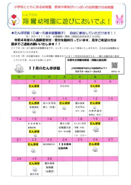 令和4年度の入園願書の交付・受付を行っております。平日9時〜18時までです。また,保育中の見学をも随時行っております。ご希望の方は翔鸞幼稚園までお問合せください! TEL 075−461−3642