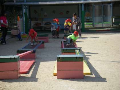 みんながマントマンになって出動です。いろいろな障害を乗り越えて進みます。怖がりだったAさんもB君も一本橋も何のそのの・・・・気持ちはあるのですが,まだまだ進化の途中です。一日一日たくましくなっていくのが見えて楽しみです。