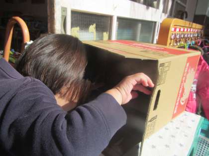 ひかり組の子ども達は,紙粘土でクッキーをつくって遊ぶことが大好き!段ボールのオーブンでチーンと焼くと,お皿に並べてクッキー屋さんをして遊んでいます。すると,Aちゃんが「このクッキー,サンタさんにあげたいな!」Bちゃん「うん!プレゼントしよう!そうだ!ツリーの前に置いておこう!」と言って,クッキーを入れた袋をツリーの前に並べていました。そして,なぜか「パンパン!」と手を打ち,(ここは,とても和風?ですね!)「サンタさんが,クッキー食べてくれますように!」と真剣にお願いする姿が見られました。さて,サンタさんは皆のつくったクッキーを食べてくれるでしょうか?楽しみですね!