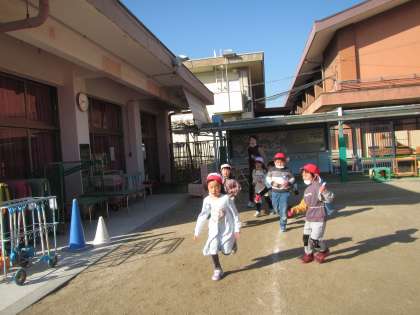 12月から毎日頑張ったマラソン。「ゆっくり走ったら,音楽が止まるまでずっと走っていられる!」ことに気が付きました。今日のマラソン大会では,「がんばって走る!」「歩かずにずーっと走る!」と,めあてをもって取り組む姿がありました。終わった後,クラスで話をしていると,「ひかり組の時は歩いてたけど,そら組になって,最後まで全部走れたのが嬉しかった」とAちゃん。「今日は19周走った!」とBくん。達成感をたくさん感じることができたマラソン大会でした。