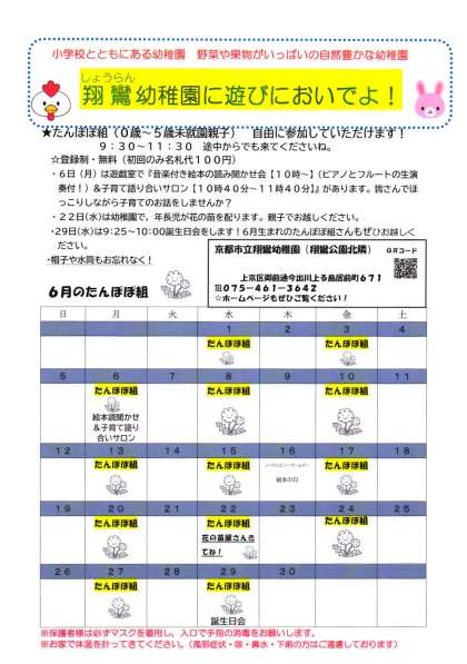 6月たんぽぽ組(未就園児親子クラス)の予定