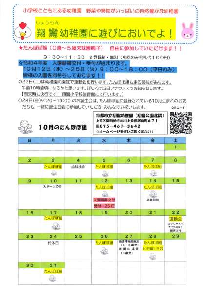10月たんぽぽ組(未就園児親子クラス)の予定について