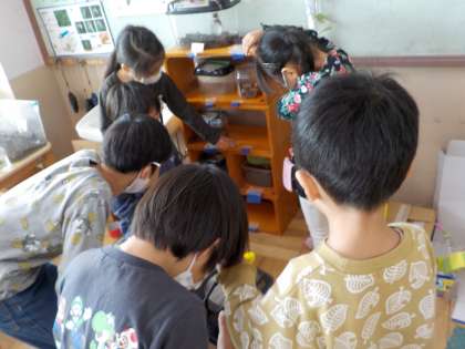 今までに育てた色々な生き物や、好きな動物などをつくって世話をすることを楽しんでいるそら組の子どもたち。つくった生き物は”動物マンション”というマンションに住んでいます。そしてそこを拠点にマンションに向かう船や線路、駅、駅弁など、次第に町のようなものができてきています。今日も動物マンションの住人や町をつくっていた子どもたち。すると、「研究所の生き物もマンションに住ませてあげたい」とAくん。今まで一緒に遊んできたクワガタやダンゴムシ、バッタ、何かの幼虫、セミの抜け殻など、色々な生き物が住んでいる昆虫マンションができました。マンションにはまだ空いている部屋があります。住人大募集です!