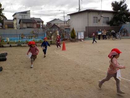 12月から始まったマラソンタイム。寒さに負けず,みんなほっぺを真っ赤にしながらマラソンをしています!4歳児の子どもが,5歳児の走る姿を見て「すごいなー!僕たちよりもいっぱい走って,ほんとにスゴイ!!」と憧れと,尊敬の眼差しで応援していました。そうなんです。5歳児は1月から10分間。4歳児が8分間。3歳児が5分間と一番長い時間走っているのです。自分のペースで最後まで走りきる姿は,みんなとってもイキイキしていてかっこいいです!1月31日はマラソン大会です。お家の方も応援しにきてくださいね!