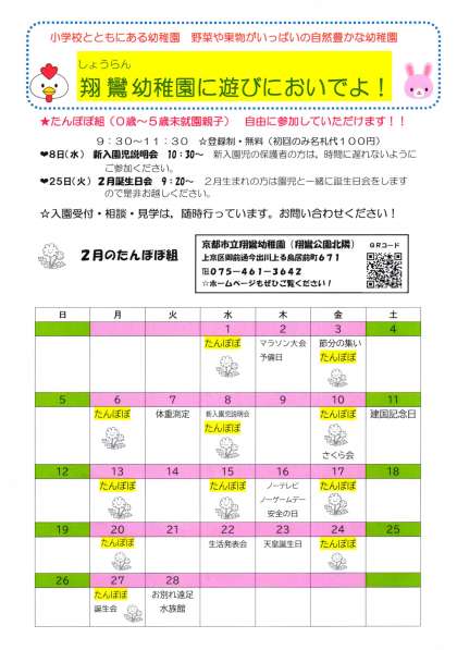 2月のたんぽぽ組(0〜5歳児未就園児親子クラス)のお知らせです。