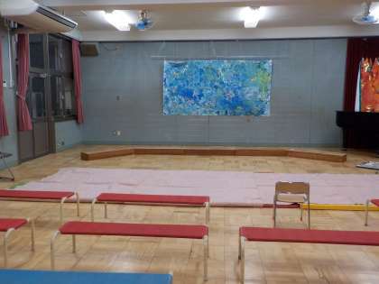 明日はいよいよ生活発表会本番です。今日は幼稚園の先生たちにお客さんになってもらい,みんなで歌を歌ったり,劇遊びや楽器遊びをしたりしました。どのクラスの遊びも,子どもたちの「大好き!」がたくさん詰まっています。明日使う道具をパワーアップさせながら,「あ〜ドキドキする〜!」と子どもたち。ひかり組さんもにじ組さんもそら組さんも,お客さんを呼んでの生活発表会は初めてですね。遊戯室の準備もばっちりできました。明日,元気にきてくださいね!