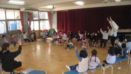 今日はこどもお別れ会がありました。そら組のみんなには、「幼稚園でいちばん心に残っていること」を話してもらいました。「苗屋さんをしたこと」「しっぽとりをしたこと」「ヤゴを育てたこと」「生活発表会でかいぞくポケットをしたこと」などなど、子どもたちの心にたくさんの素敵な思い出が残っていることが伝わってきました。ひかり組・にじ組の子どもたちも、そら組さんとしっぽとりやサッカーをしたことが楽しかったと教えてくれました。思い出を一緒に振り返ると同時に、進級への思いもふくらませているようでした。