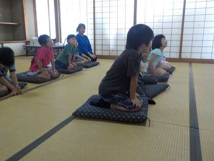 そら組の子どもたちは、今日、茶道の先生に来ていただき、小学校の和室をお借りして、お茶体験をしました。いつもとはちょっと違う和室の雰囲気に、思わず背中がピン!とする姿もありました。掛け軸やお茶花を見たり、お点前を見せていただいたりし、お茶菓子とお茶もいただきました。「苦かったけどおいしかった」「やってみたい」という感想もありましたね。日本の伝統文化に触れる、貴重な経験をさせていただきました。
