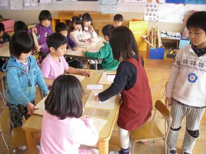 そして今度は卒園記念品製作に取り組んでいます。集中力を高めていますね。