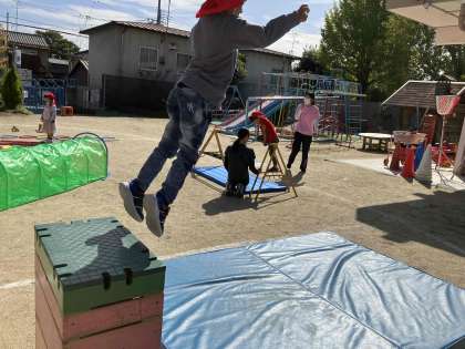 来週21日(土)は運動会!!子ども達は,色々なことに挑戦しています!3歳児4歳児の子ども達は消防士さんにあこがれて,体を鍛える訓練をしたり,消火活動をしたりすることに夢中!  5歳児の子ども達は,竹馬に挑戦!!足に『がんばりマメ』ができても,それを勲章のように自慢げに見せてくれるたくましい子ども達です!!