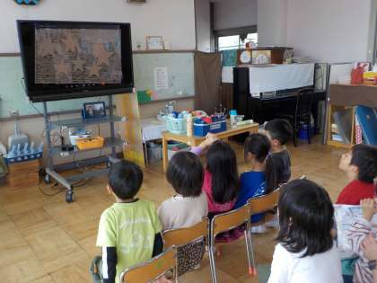 ・京極幼稚園・みつば幼稚園のお友達とオンラインで”よろしくね会”をしました。画面にうつるたくさんの友達に翔鸞幼稚園のことを紹介したり、一緒に歌を歌ったりしました。みんなで本当に会えるのは、幼稚園大会の本番の日です。「早く幼稚園大会したい!」と、ますます楽しみになった子ども達です。