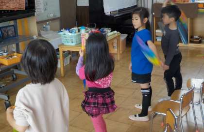 今日、そら組の子ども達は、11月の幼稚園大会で一緒に遊ぶ、明徳幼稚園・上賀茂幼稚園
