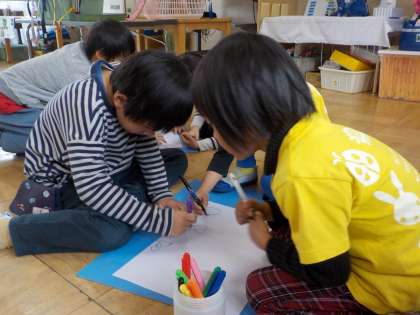 今日は翔鸞幼稚園の園内展を、乾隆幼稚園さんが見に来てくれました。乾隆さんに会うのとをとっても楽しみにしていた子どもた。園内展を一緒に見たり、作品を得意そうに説明したりしていました。その後は保育室や園庭でたっぷり遊び、またぐっと仲良しになった子ども達。そら組の子ども達は、乾隆幼稚園のすみれ組さんと一緒に来年(1〜3月)のカレンダーをつくりました。3〜4人の友達と相談しながら担当の月を決めたり、イメージを広げながら楽しんで絵をかいたりする姿がありました。このカレンダーが終わったら、そら組・すみれ組のみんなは小学生です!おもいがいっぱい詰まったカレンダー、2024年が楽しみですね。