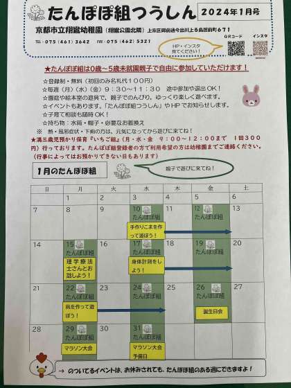 1月も親子でいっぱい遊びたいと思います!予定表が完成しましたので、ご覧ください。1月は10日からスタートします。皆様にお会いできるのを楽しみにしています!