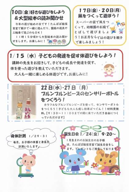 1月のたんぽぽ通信(未就園児親子クラス)のお知らせ