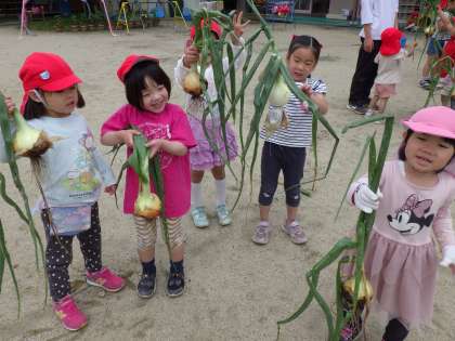 今日は園庭のたまねぎをみんなで収穫しました。